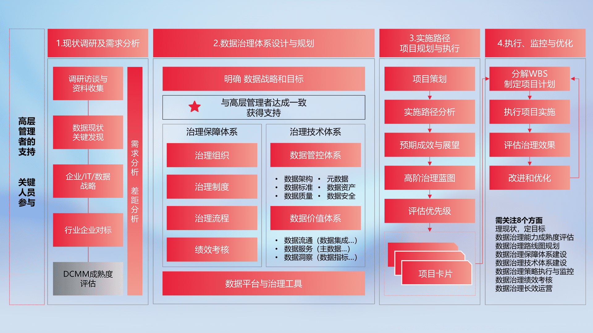 制定并执行统一的数据标准,,,规范数据定义和格式,,消除冗余和不一致性,,,,实现跨部门和跨系统的数据一致性,,为企业提供标准化的数据基础。。
